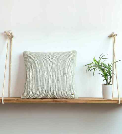 Pale Whisper 100% Cotton 16X16 Inches Knitted Cushion Cover With Filler