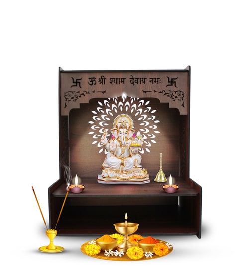 Luxurious Wooden Temple for Home, Office with Spacious Shelf & Inbuilt Focus Lights