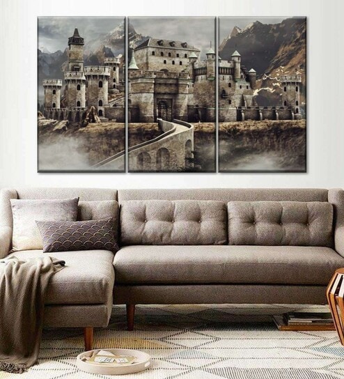 Brown Medieval Castle Panels Canvas Wall Art Panels ( Set Of 3)