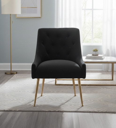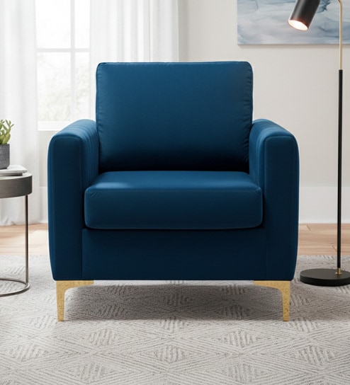 Regal Gold Legs Velvet Fabric Lounge Chair In Blue Colour