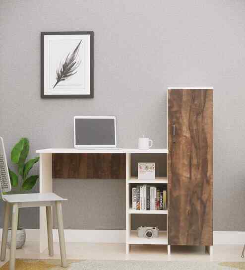 Nova Writing Table In Walnut and Frosty White Finish