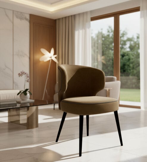 Kancha Velvet Fabric Dining Chair In Beige Colour