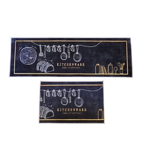Black Checks Design 40x60 cm Kitchen Floor Mats (Set of 2)