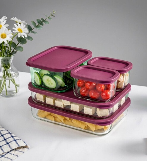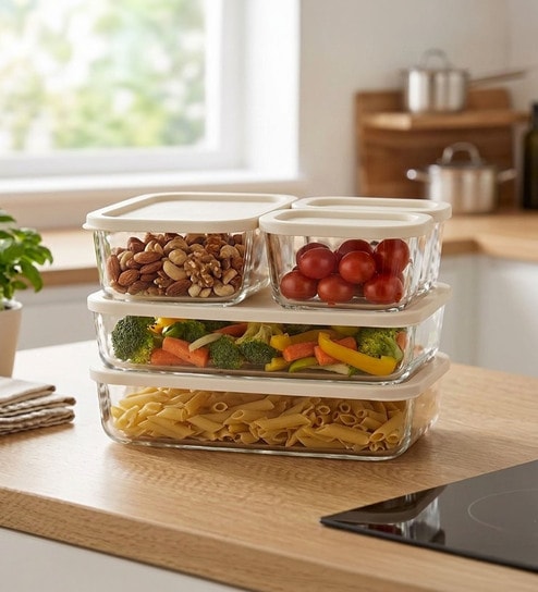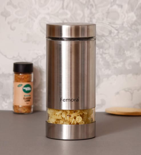 Cylindrical See-Through Glass Jars with Stainless Steel Body 350 ML | Set of 2 |