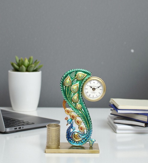 Metal Handpainted Decorative Peacock Showpiece In Multicolor