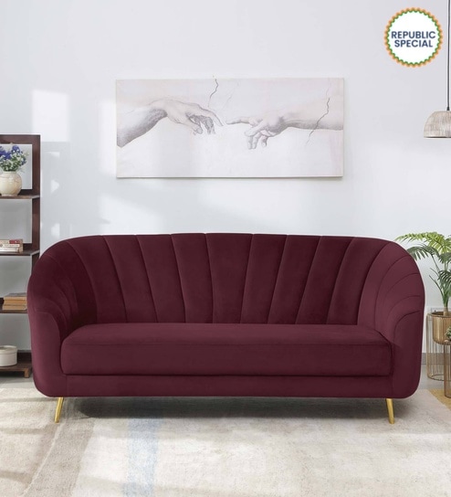 Volkach Velvet 3 Seater Sofa In Maroon Colour