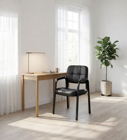 Thanos Leatherette Cantilever Chair In Brown Colour