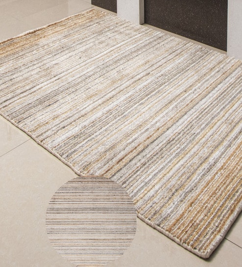 Beige Traditional Viscose And Flax And Cotton 7X5 Feet Hand Woven Carpet