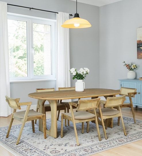 Krapina Mango Wood 6 Seater Dining Set In Honey Oak Finish