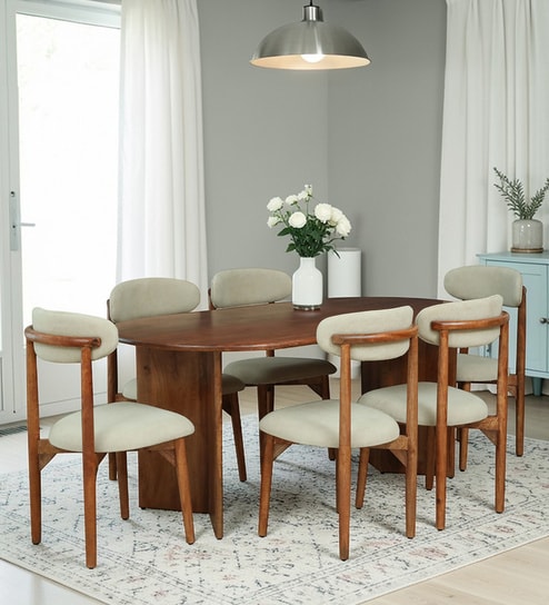 Ishani Sheesham Wood 6 Seater Dining Set in Provincial Teak Finish