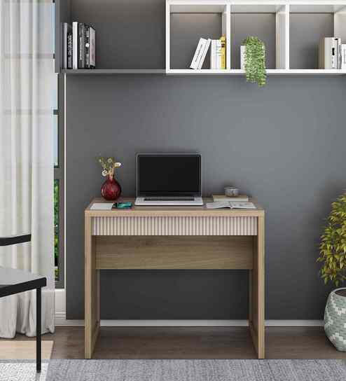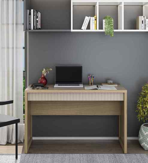 Corbyn L Shape Study Table In Brown Maple & White Finish
