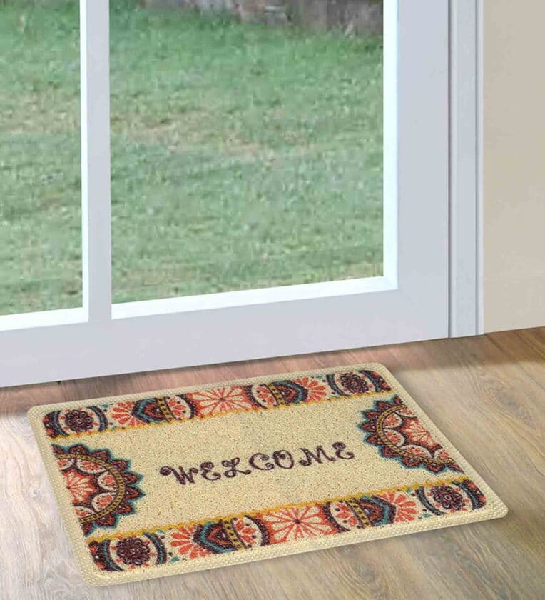 Cream Plastic Ethnic Motif Pattern 2 x 1.5 Feet AntiSkid Door Mat