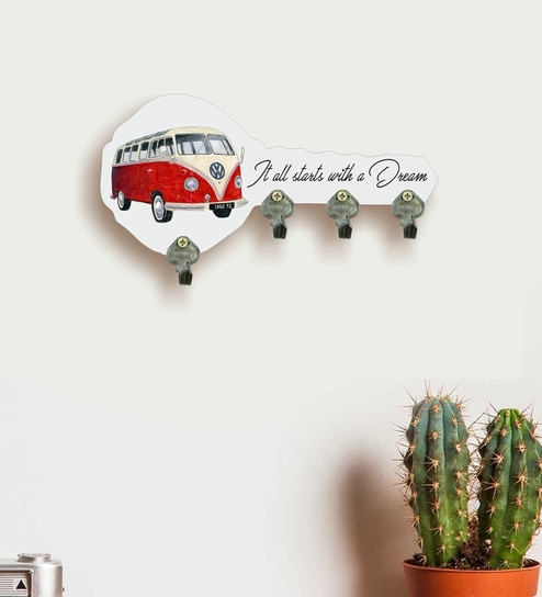 Multicolour Key Shape Digital Printed Wooden Key Holder