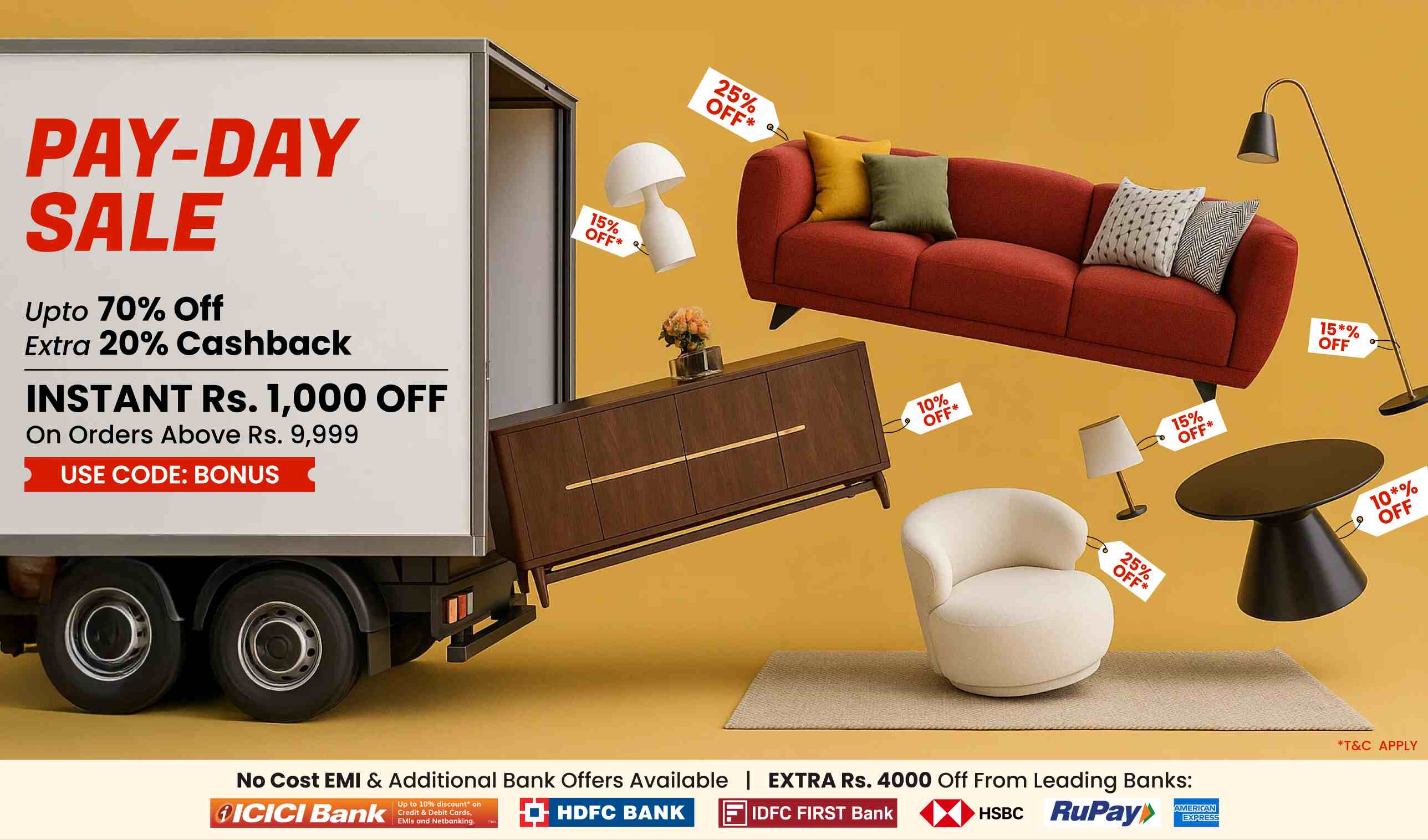 As one of India’s top furniture online stores, we have something for everyone, whether you’re looking for a new sofa, a functional dining table, or a stylish wardrobe. Our user-friendly platform lets you explore different options, compare furniture prices, and find the best deals, all in one place.