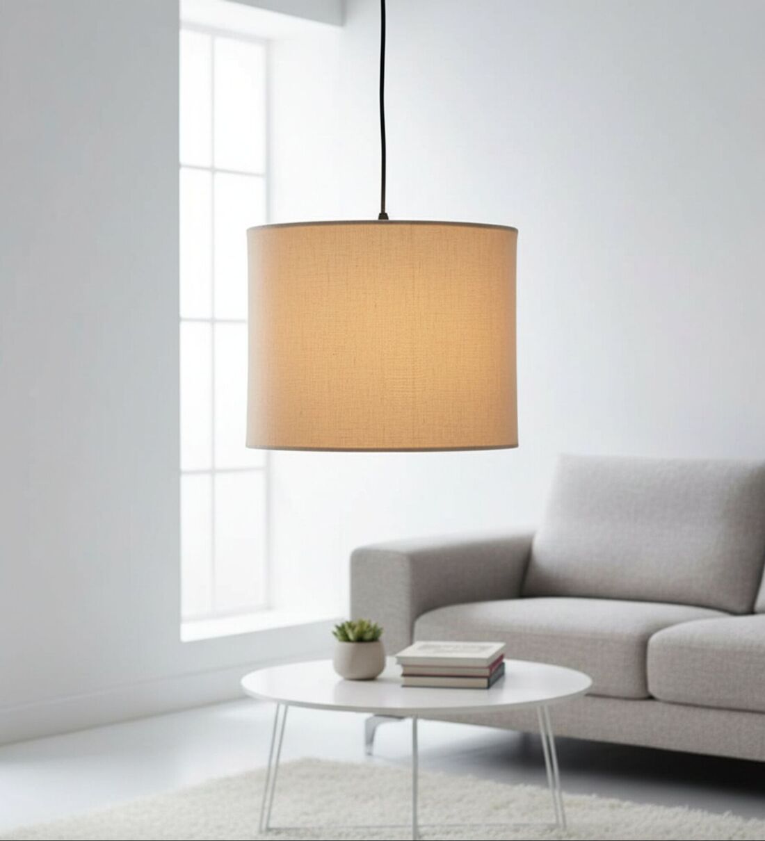 10-Inch Premium Jute Fabric Drum Pendant Light, Modern Hanging Ceiling Lamp