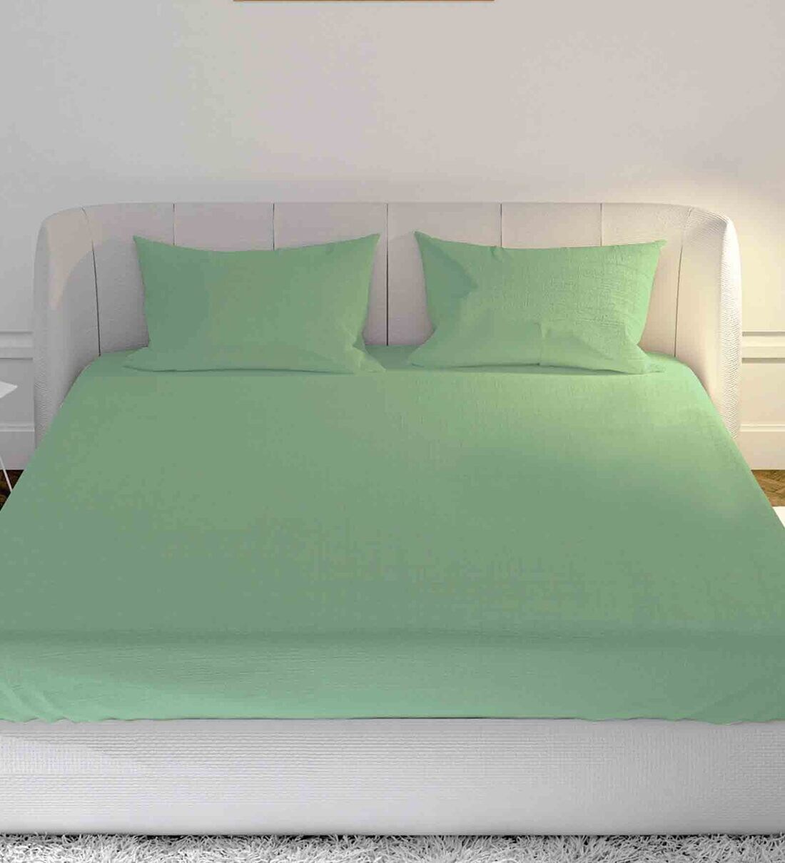 Green Solid 144 TC Cotton 1 Double King Size Bedsheet with 2 Pillow Covers