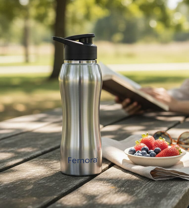 Stay hydrated on the go with this practical and durable Femora Stainless Steel Water Bottle. Designed for convenience and travel, this large-capacity bottle is perfect for the office, gym, school, or outdoor activities.