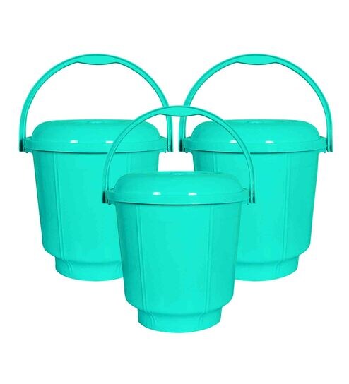13 Ltrs Mint Green Plastic Bucket with Lid (Set of 3)