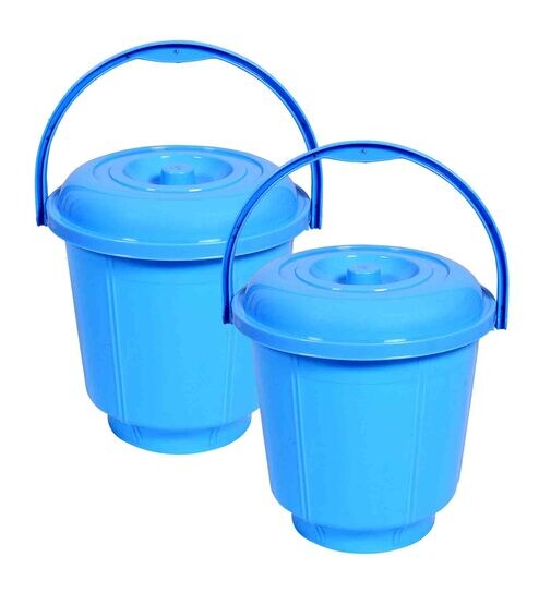 13 Ltrs Sky Blue Plastic Bucket with Lid (Set of 2)