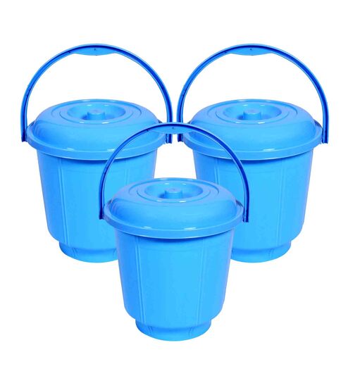 13 Ltrs Sky Blue Plastic Bucket with Lid (Set of 3)