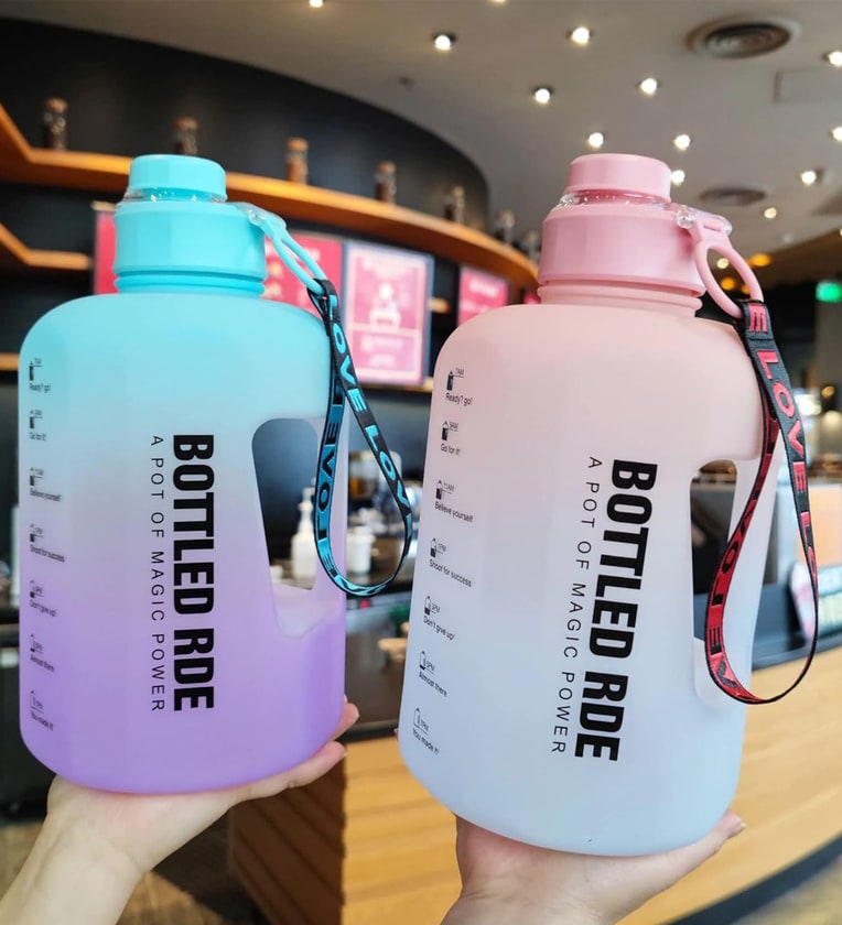 2.5L Of Water, Meets Daily Water Intake, No Need To Refill Frequently. Food Grade Material, Eco-Friendly, BPA-Free, Odor-Free, And Can Rest Assured Use. Wide Opening Design Is Easy To Fill Water, Ice Cubes, Different Sports Drinks And Convenient To Clean With A Bottle Brush. Featured With Time Markers, Better Boost Your Daily Water Intake. Built-in Handle And Reinforced Strap For Easy Carrying And Pouring.