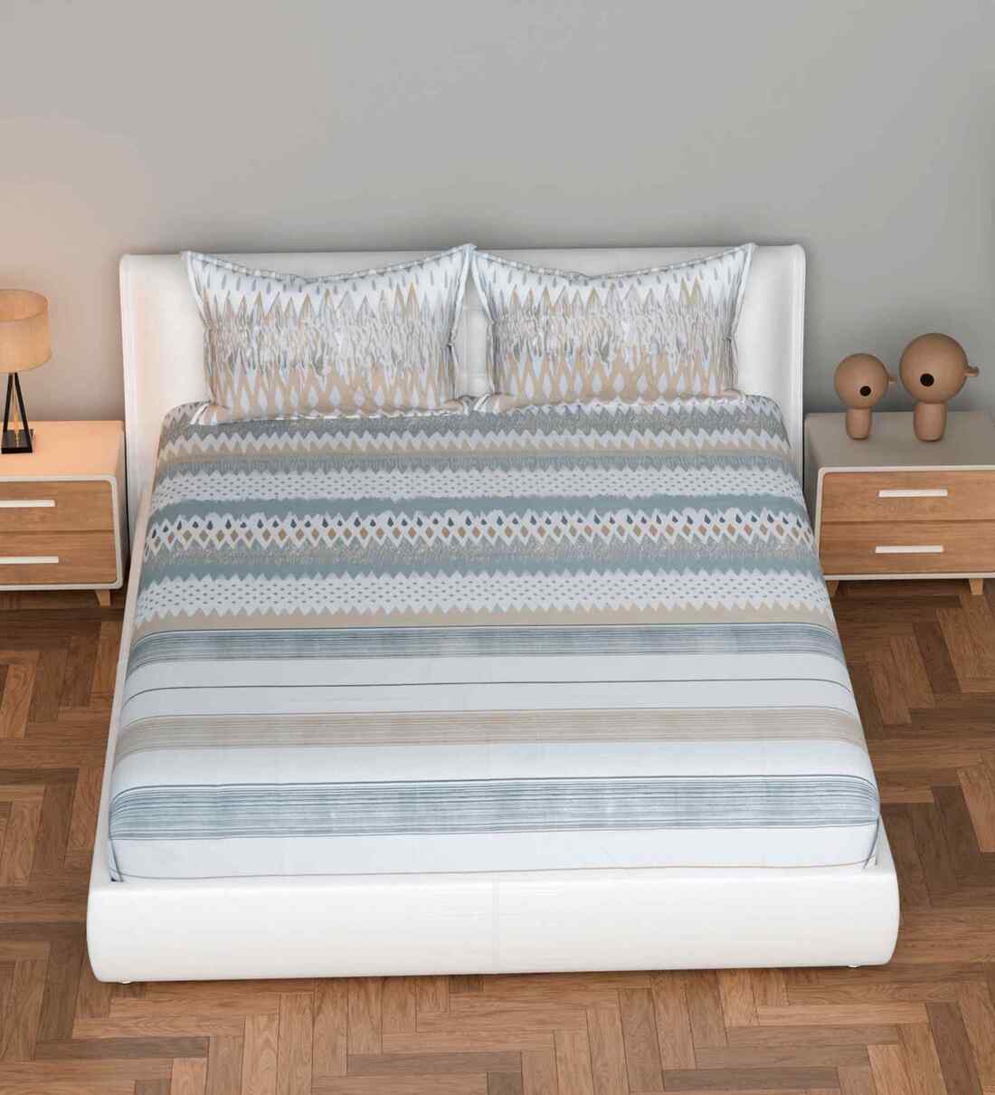 180 TC Microfiber Geometric Single Bedsheet with 1 Pillow Cover (Grey, 155x228 CM)
