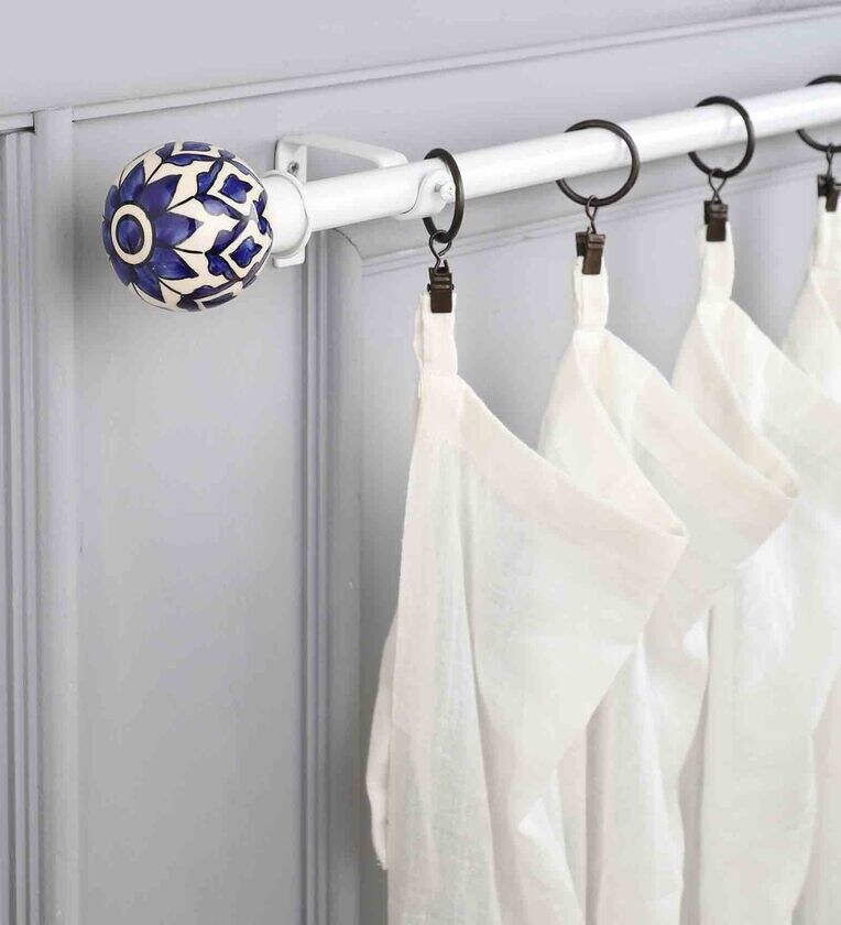 19mm Iron Curtain Rod with White and Blue Ceramic Finial