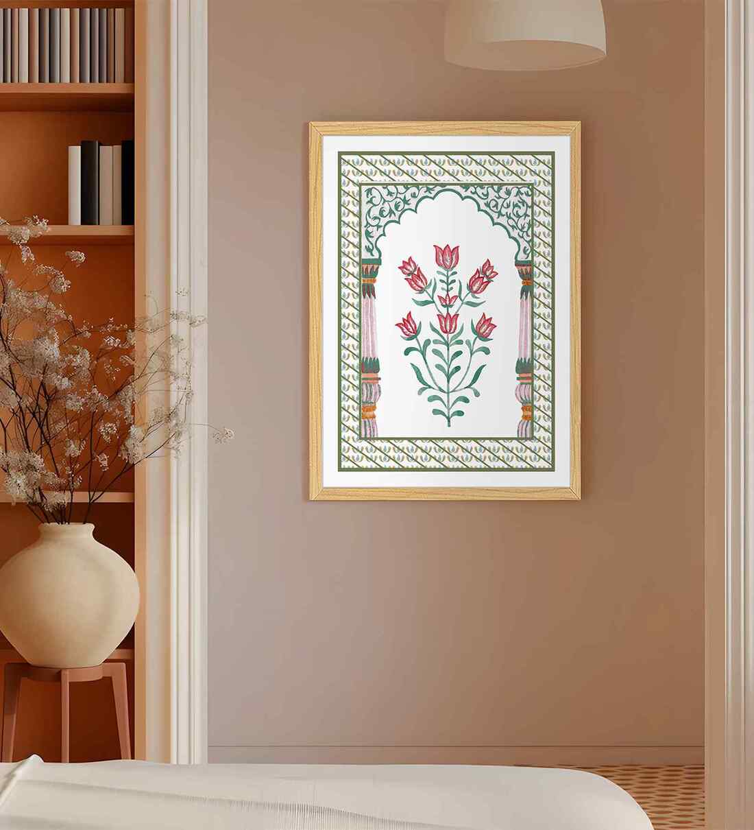Add a touch of timeless elegance to your space with the Painting Mantra Elegant Mughal Floral Art Print. Inspired by the rich heritage of Mughal design, this art print features intricate floral patterns that bring warmth and charm to any room. Perfect for both home and office decor, its vibrant colors and detailed motifs create a stunning focal point. Printed on high-quality material, this piece is designed to last and enhance your interior with a blend of tradition and modern allure.