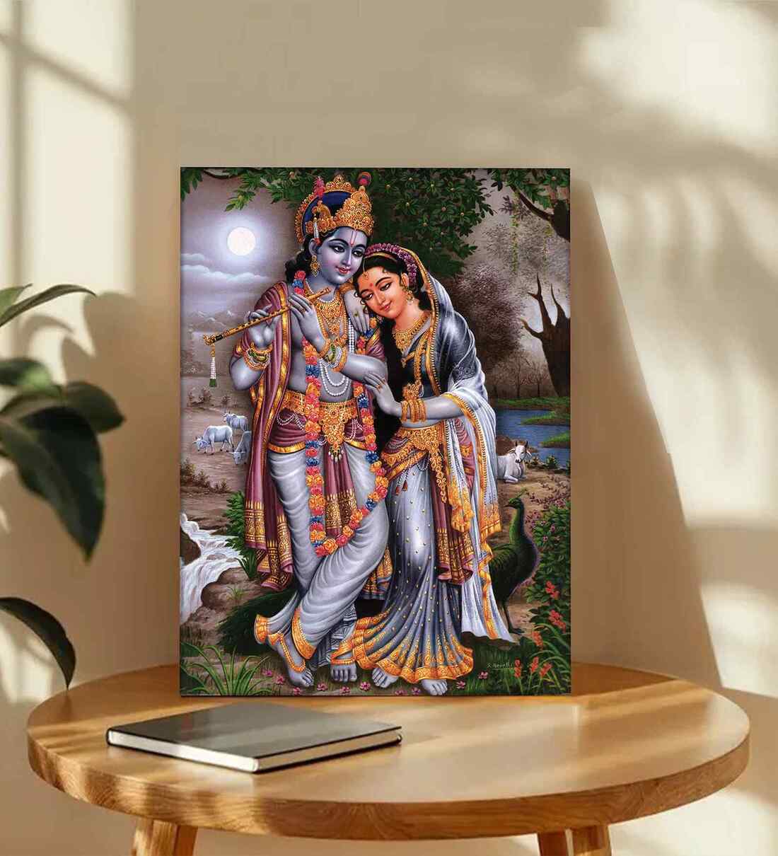 Add a touch of divine love to your space with Art Street s Sri Radha Krishna Grey canvas painting, digitally printed on premium 100% cotton canvas and stretched over a sturdy wooden frame. Measuring 30x41 cm, this ready-to-hang artwork includes a durable metallic hook for easy display in your pooja room, mandir, hallway, living room, or office. The elegant grey-toned depiction of Radha and Krishna brings spiritual charm and serenity to any setting. Perfect for home d cor or as a thoughtful gift for housewarmings, festivals, and special occasions. The package contains one stretched and framed canvas painting, ready to hang straight from the box.