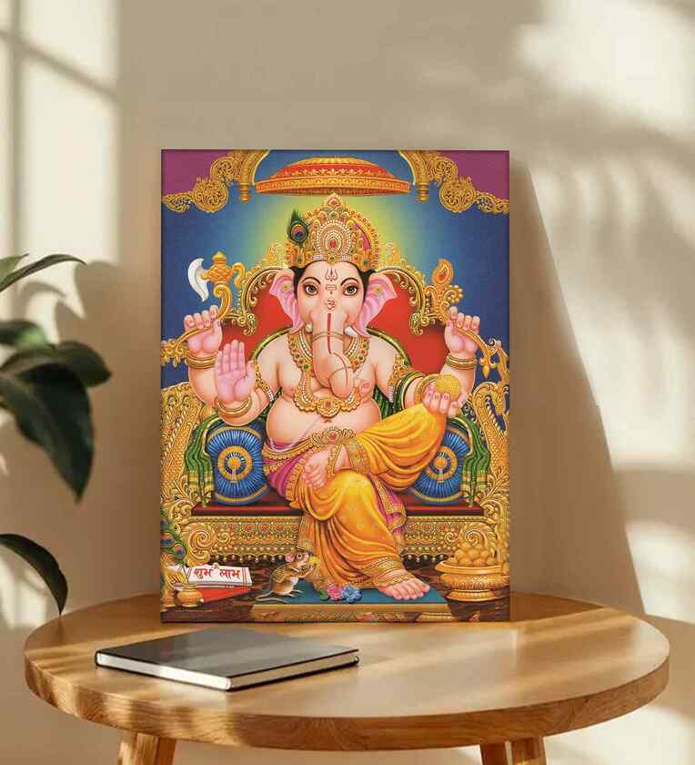 Art Street Lord Ganesh Ji Stretched Canvas is a beautifully digitally printed artwork on 100% cotton canvas, stretched over a durable wooden frame with a sturdy metallic hanging hook, ready to hang right out of the package. Measuring 30x41 CM, this elegant painting is perfect for enhancing the spiritual charm of your pooja room, mandir, hallways, living room, or office. It adds a serene and divine vibe to any space and makes a thoughtful, spiritual gift for housewarmings, festivals, or special occasions to impress your loved ones.