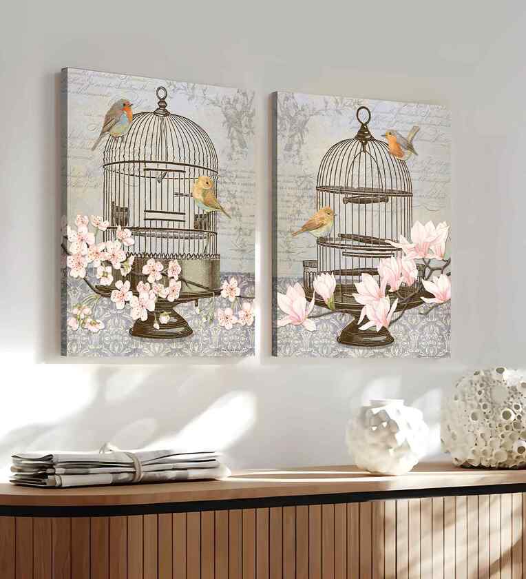 This Art Street Floral Bird Theme stretched canvas painting art print pack of 2 beautifully combines vibrant floral patterns with charming birds, bringing a refreshing and lively touch to your walls. Printed on high-quality stretched canvas, each 30x41 cm piece suits Indian living rooms, bedrooms, hallways, and office spaces perfectly. This elegant set adds a natural, artistic vibe to your d cor, creating a warm and inviting atmosphere that brightens up any room with its colourful and graceful design.