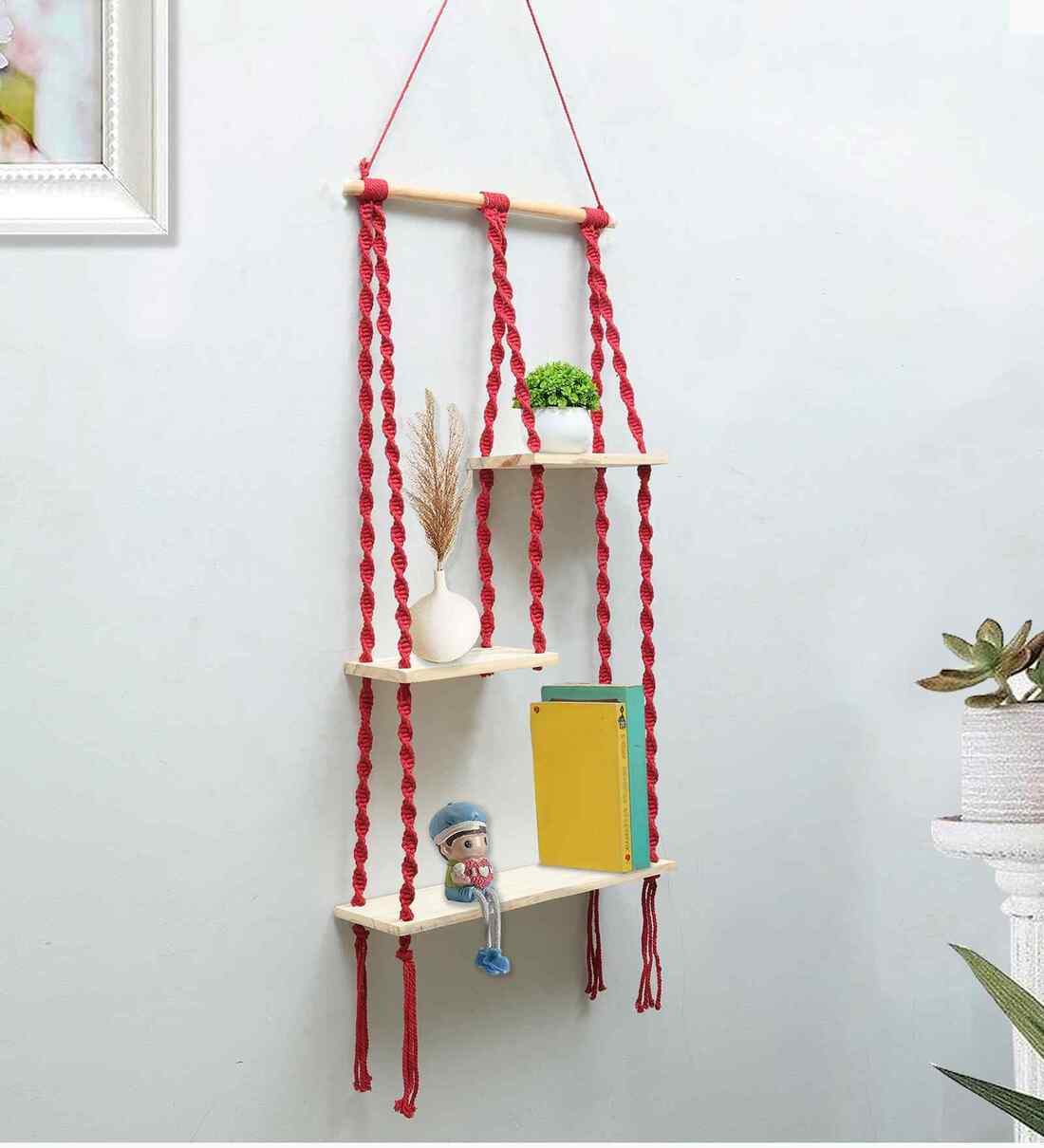 (1Pc) Red Cotton Macrame Hanging Shelf