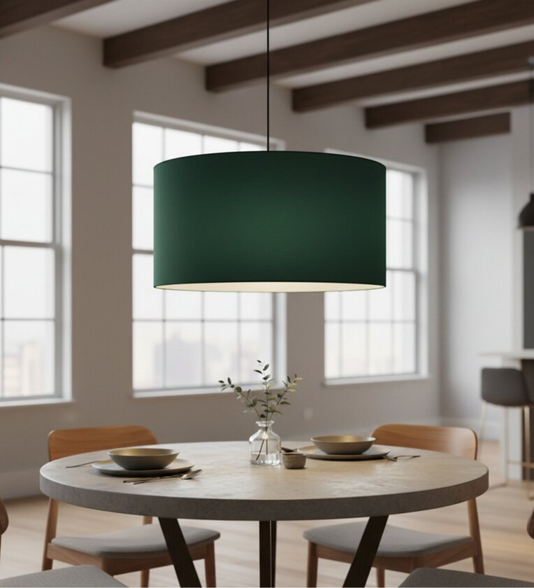 20-Inch Dark Green Fabric Drum Pendant Light, Modern Hanging Ceiling Lamp