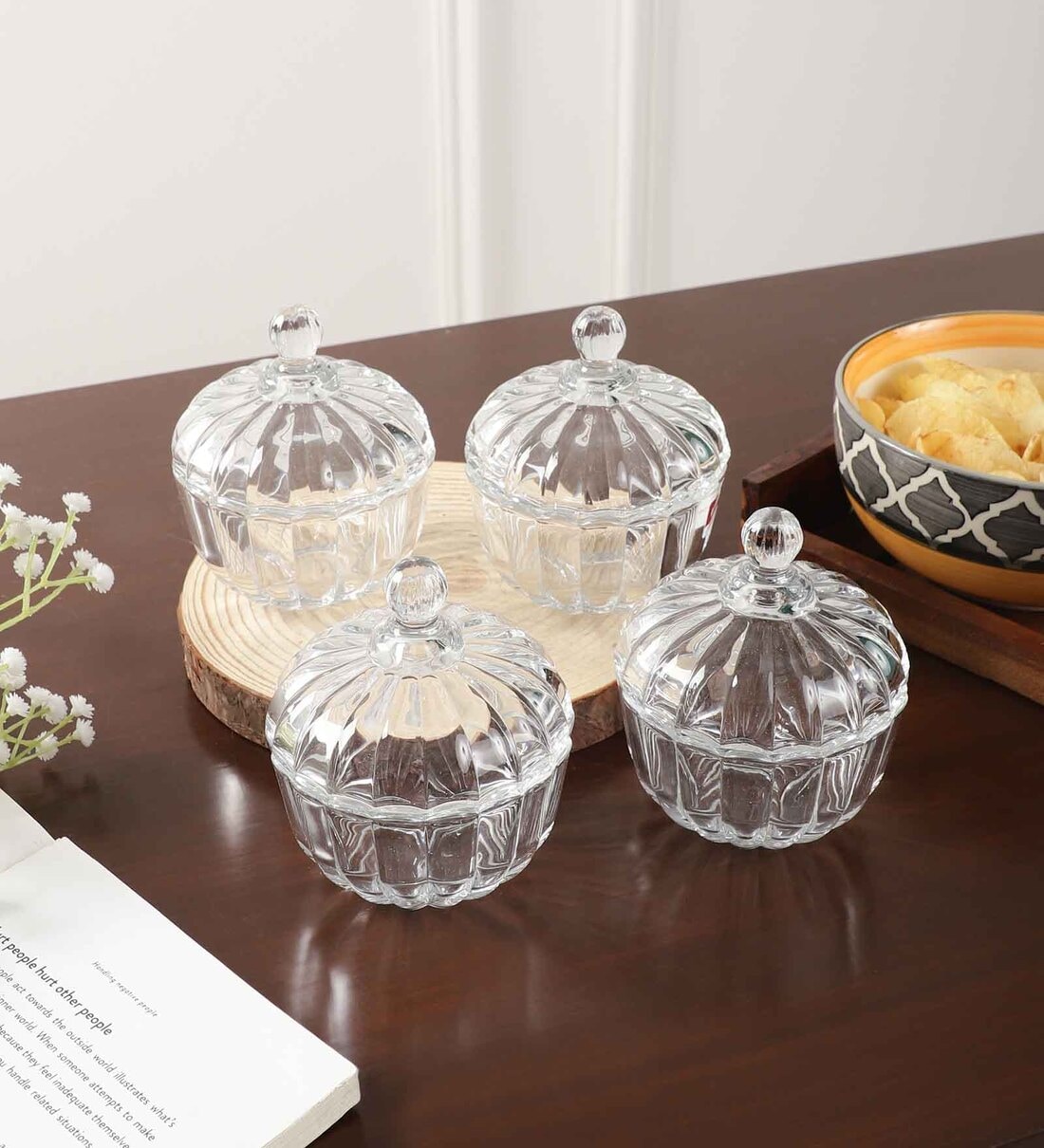 200ml Transparent Glass 4 Pcs Serving Bowls