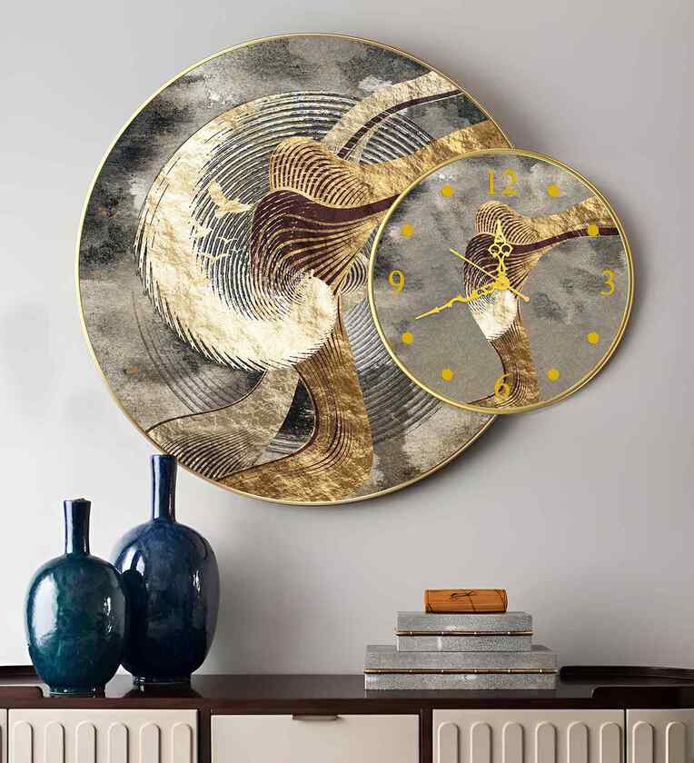 Round Wall Painting with Clock for Living Room Decoration, Clock with Painting