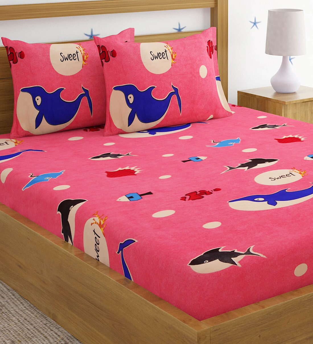 220 Gsm Glaced Cotton Cartoon Printed Double Bed Sheet With 2 Pillow Covers