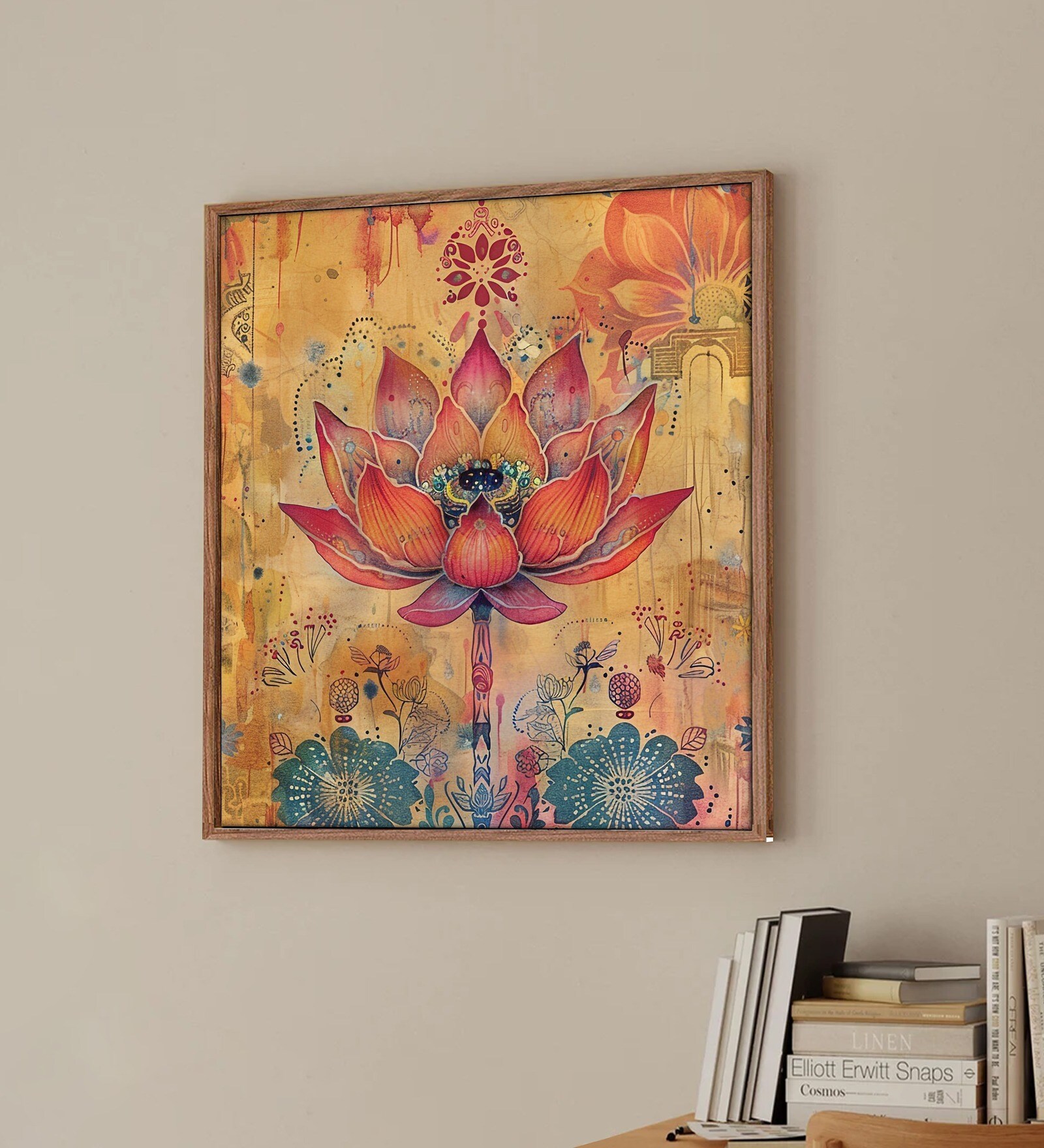 Art Street Large Framed Lotus Floral Canvas Painting (Pink , Size 23x23 Inch)