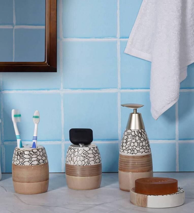 300 ML Set Of 4 Beige Porcelain Pebble Creek Bath Set
