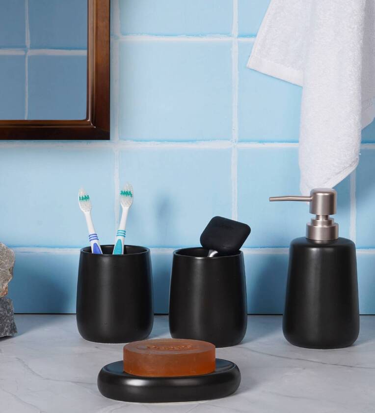 Design: The set includes a sleek tray for soap, a holder for toothpaste and brushes, a versatile container for other bathroom essentials, and a stylish soap dispenser. Each piece features a smooth, glossy white finish that adds a touch of elegance to your decor, making it suitable for both modern and traditional bathrooms.