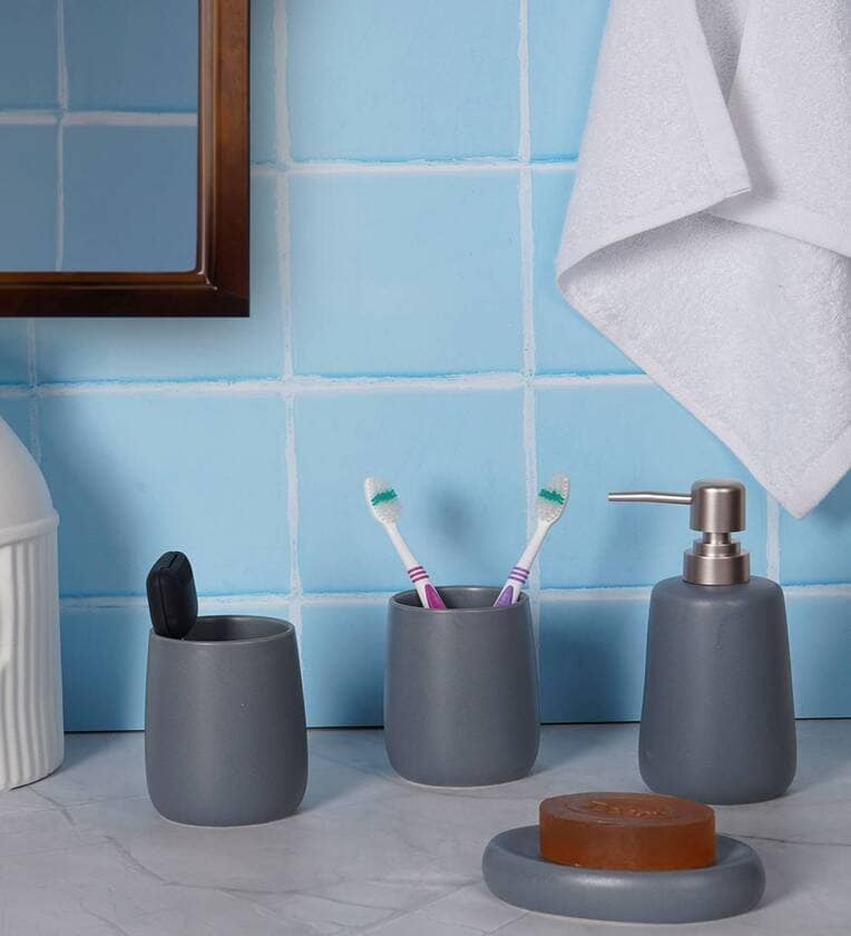 Functionality: Designed for practicality, this freestanding bathroom set keeps your essentials organized and easily accessible. The tray provides a designated space for soap, while the toothbrush holder accommodates multiple brushes and toothpaste. The additional container is perfect for cotton swabs or other small items, and the soap dispenser ensures your liquid soap is always within reach. This complete set not only simplifies your bathroom routine but also elevates the overall aesthetic of your space.