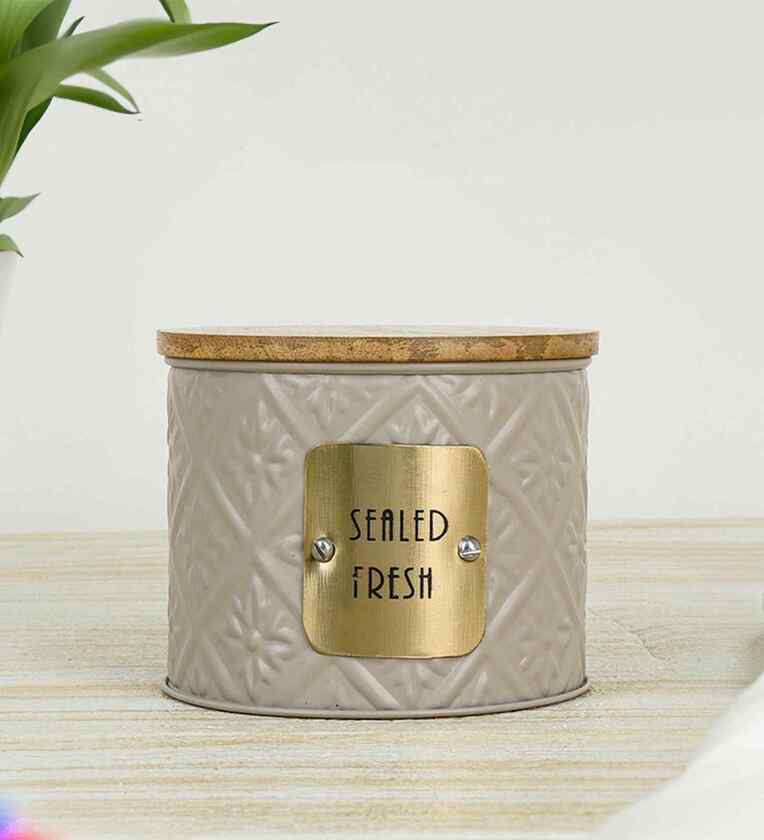 Introduce charming, compact storage to your kitchen with this single Femora Round Jar. The body is crafted from durable Tin and features a lovely Beige tone (often appearing as a soft cream or light, neutral color), bringing a warm, contemporary, and opaque aesthetic to your countertop.