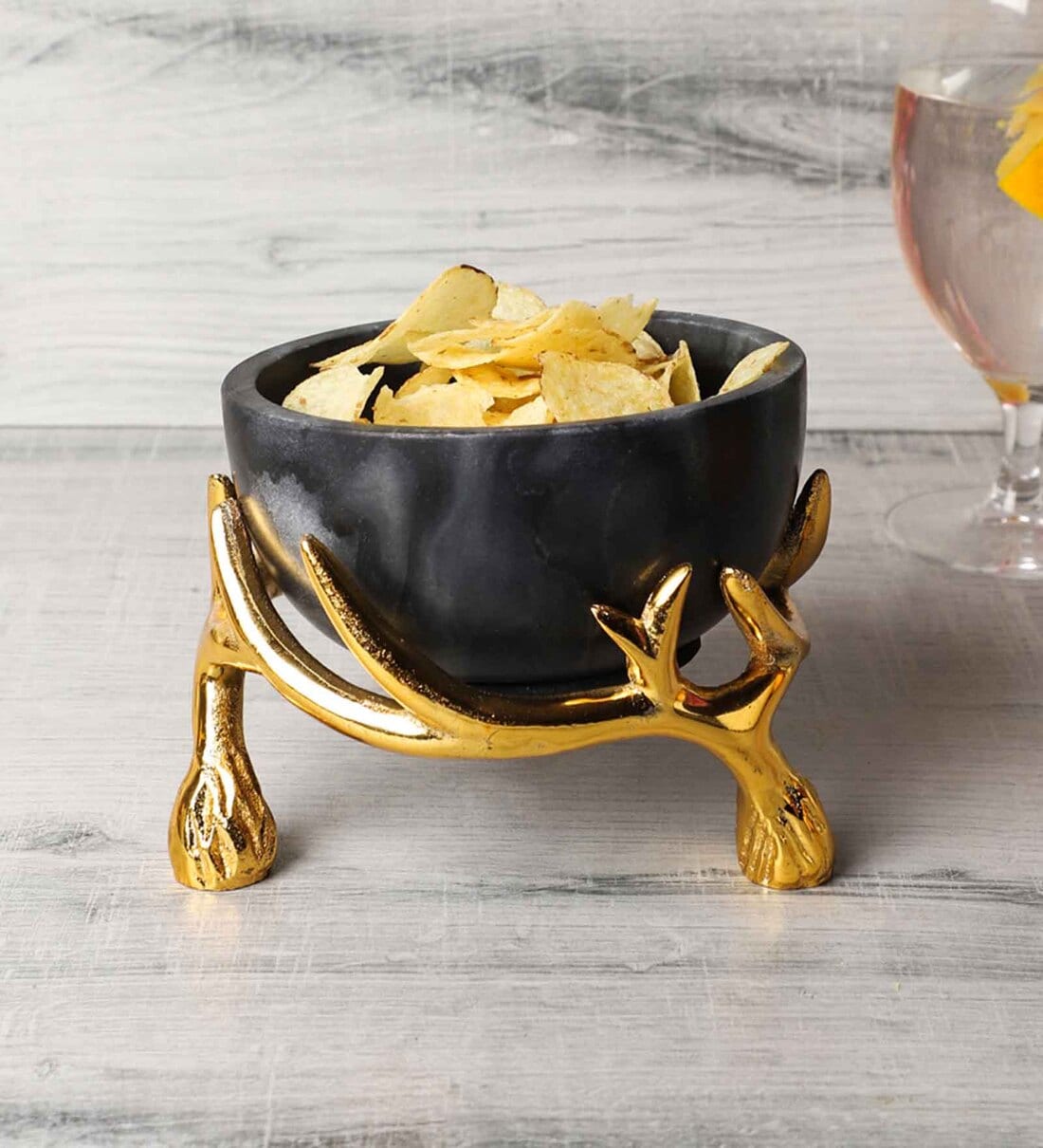 About this item Material : Solid Marble and Cast Aluminium Antler Stand with Electroplating Color: Green and Gold || Size: Width : 14 Cm and Height : 8 cm || Weight : 1300 Grams Multi- utility Bowl || Serving Bowl || Decorative Bowl || Home Decor || Kitchen Decor || Garden Decor || Desert Bowl || Soup Bowl || Snacks Bowl Elevate your Dining or table setting in brilliant, paramount practicality with the Marble Bowl antler Stand exclusive and Unique creation made by Heart This is a product designed emotionally made by rural artist as a skilled ARTISAN CRAFTSMANSHIP. A very appealing Eye catching, ethnic, Antique traditional style master piece .All are Handmade so some imperfection might occur