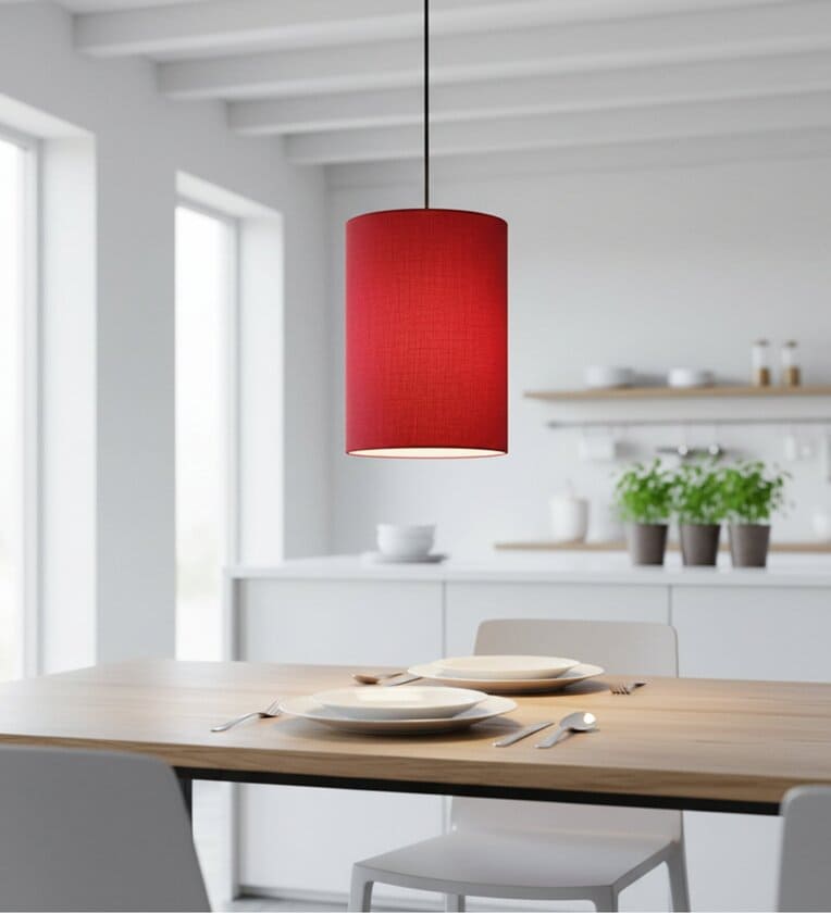 6-Inch Red Fabric Cylinder Pendant Light, Modern Hanging Ceiling Lamp