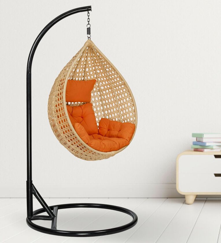 6 Star Wicker Swing in Beige & Orange Colour