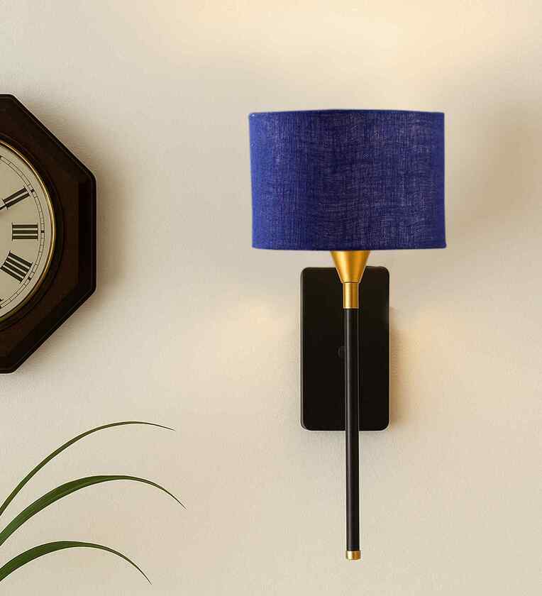 7-Inch Drum Shade Wall Light Minimalist Fabric Shade with Metal Base-Blue Jute