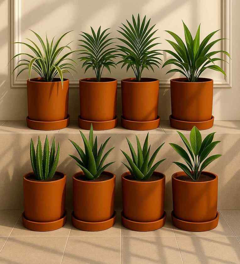Terracotta improved drainage, better aeration for roots, and natural insulation, which helps regulate soil temperature and moisture levels, promoting healthy plant growth