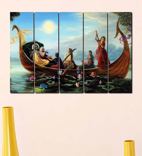 Multiple Frames Printed Shri Krishna with Radha Panels like Painting