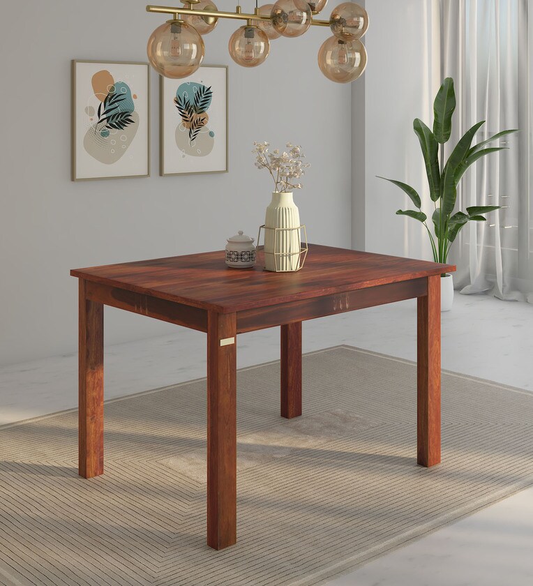 Abbey Sheesham Wood 4 Seater Dining Table In Honey Oak Finish