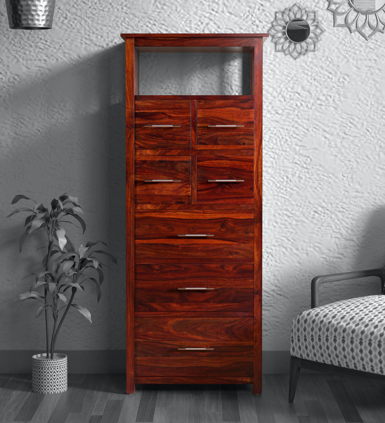Abbey Sheesham Wood Tall Chest Of Drawers In Honey Oak Finish