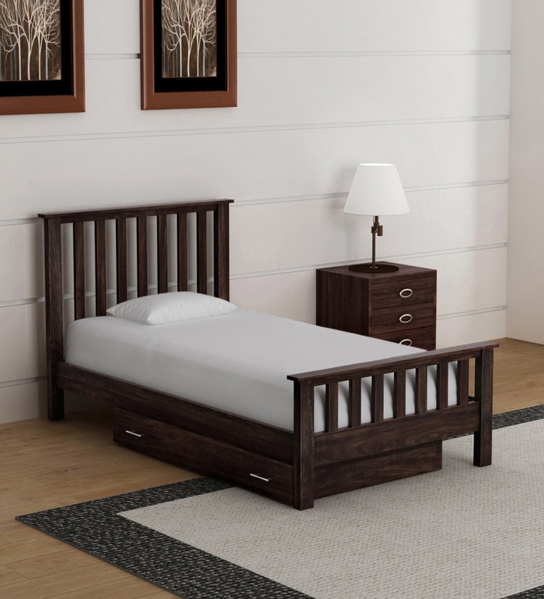 Abbey Sheesham Wood Single Bed With Drawer Storage In Warm Chestnut Finish